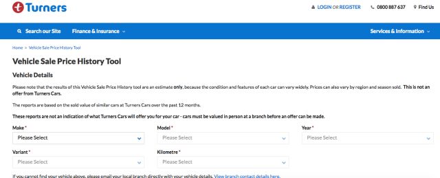 3. 一般大型车行网站上都会免费提供最近售出车辆的成交价格供顾客参考。大型车行的车辆售价较为合理和规范,基本上能准确反映行情。您可以通过Turners Cars网站上的Vehicle Sale Price History Tool轻松查询车辆的历史成交价格。